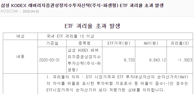 그런데 거래량이 급증하게 되면 LP가 값을 제대로 맞추기 어려워지고 괴리율이 발생하면서, 주가는 이 NAV값보다 커지거나 작아집니다.